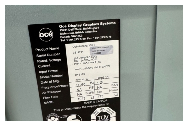 Oce Arizona 2380 XTF from DK-D 04-2025